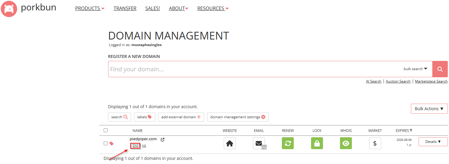In Porkbun-> Account -> Domain Management , select DNS under domain name.