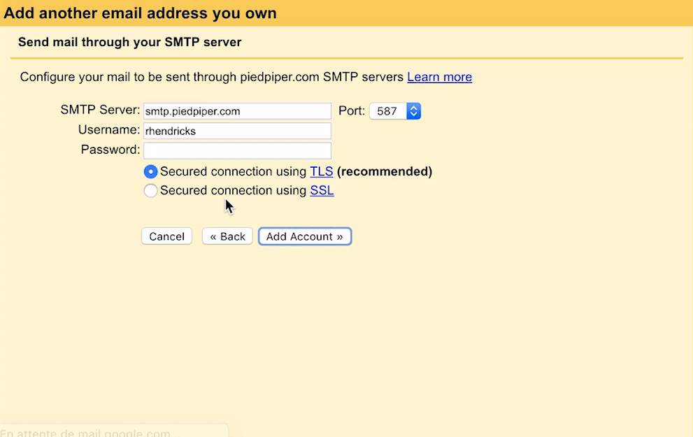 - SMTP server: smtp.gmail.com