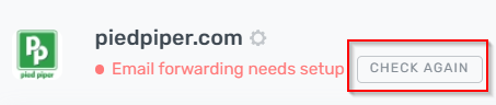 That's it! DNS changes can take up to 24-48 hours to propagate, but usually happen sooner. We'll notify you once detected. You can also click 'Check Again' on the ImprovMX dashboard to see if it's updated.
